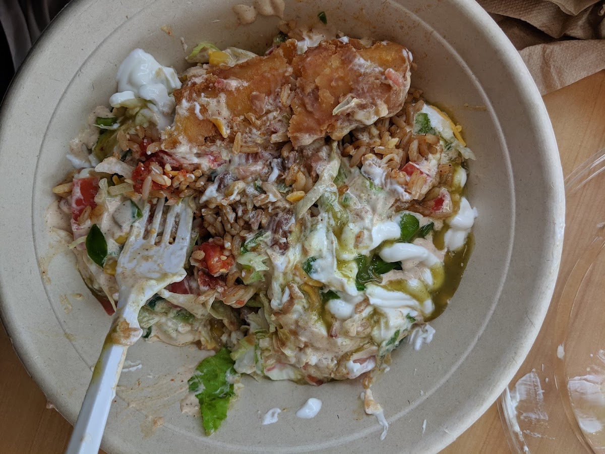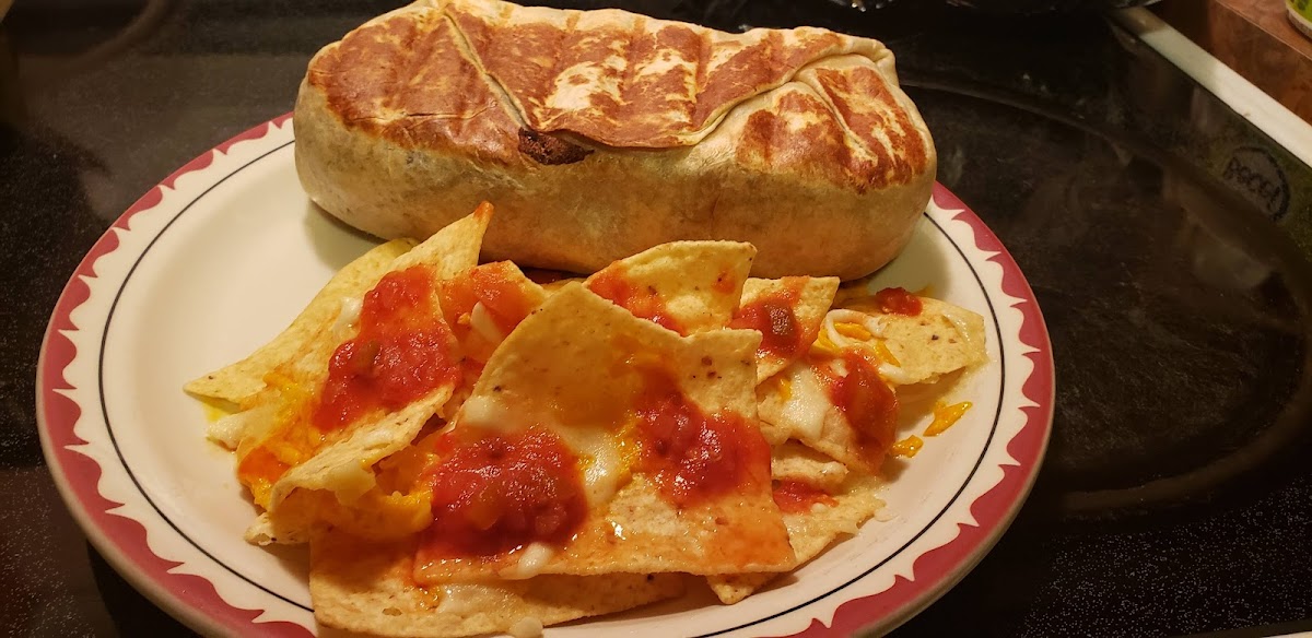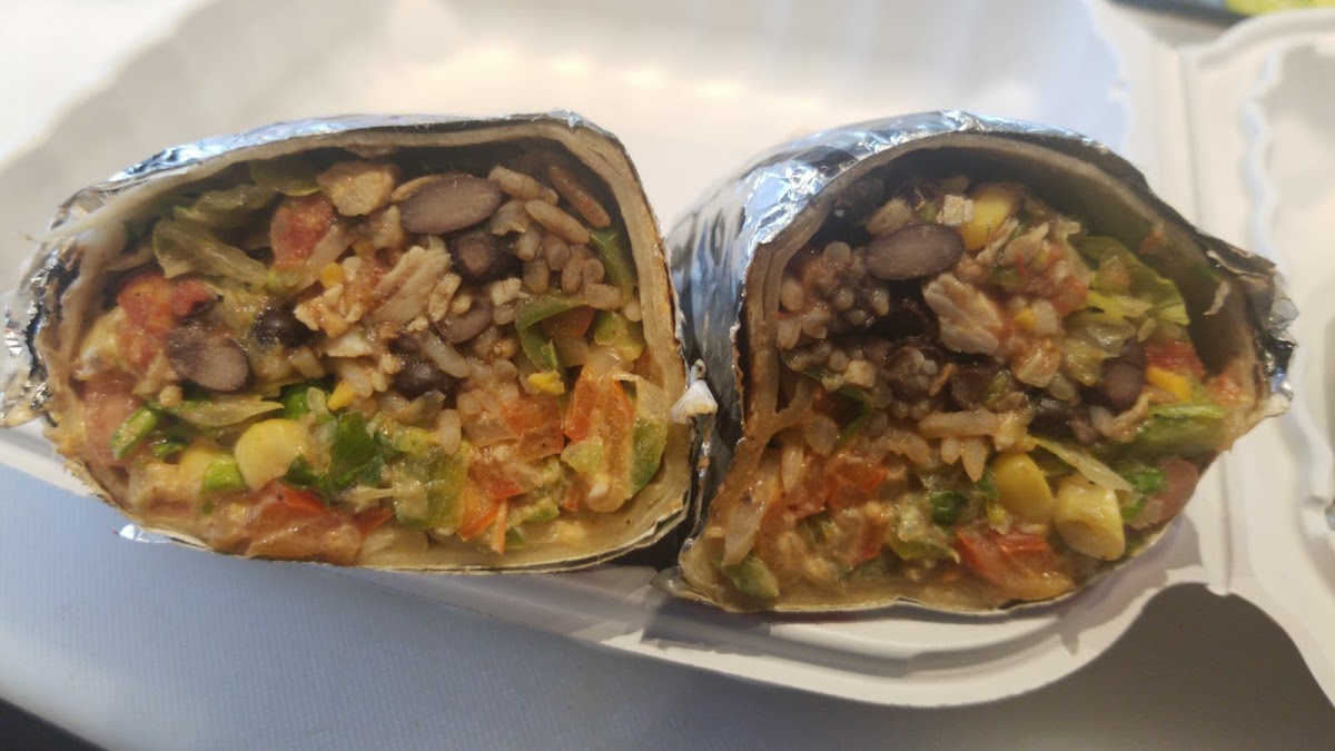 4.5/5 A solid and affordable burrito joint. Very filling wrap with lots of topping and sauce options, I was able to split a large with my sister. The burritos were a bit salty but the nashville chicken tacos and salsa and chips were delicious! The corn tacos could have been softer and fresher as it ripped when folded in half, but otherwise the fillings were tasty.